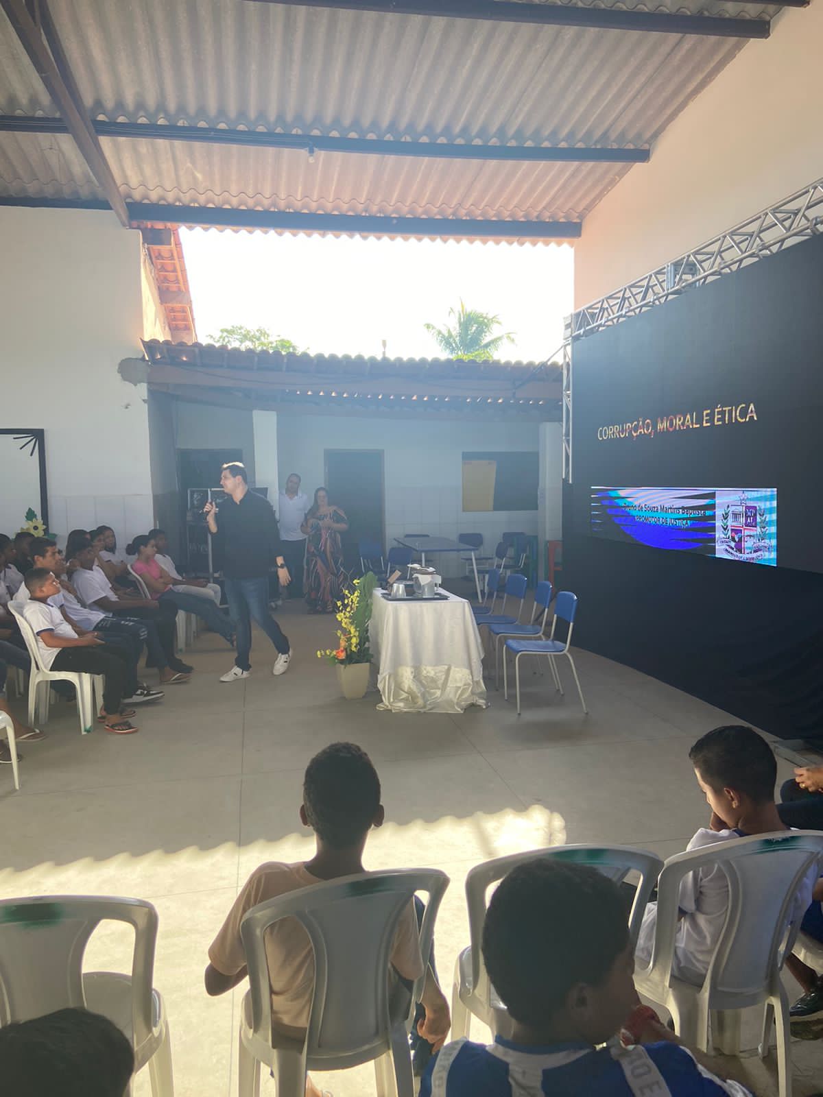 “Na quarta-feira, a equipe da Polícia Militar que coordena do Proerd esteve na escola do povoado para conversar com os alunos sobre os malefícios relacionados ao uso de drogas. Na quinta-feira, eu fiz uma fala sobre corrupção, moral e ética, em que busquei explicar para os estudantes questões relacionadas ao assunto”, relata o promotor Baptista.
