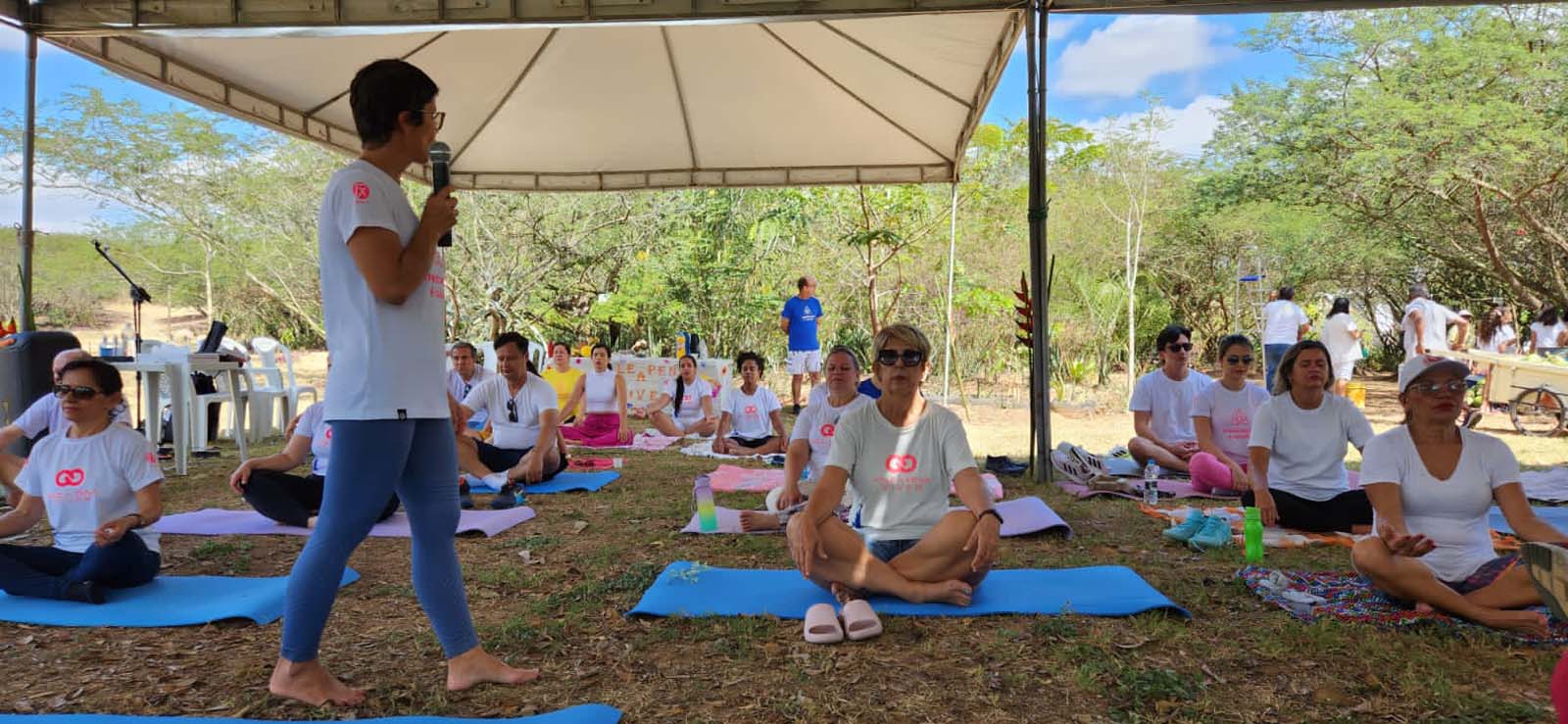 Uma agenda diferente com destino a um espaço verde, a constatação do equilíbrio da natureza refletida na beleza local, cuja proteção destaca Maria de Fátima, pessoas de branco, meditação, palestra, música, o evento fez a junção de tais elementos para que os participantes pudessem respirar amor, gratidão e fraternidade.