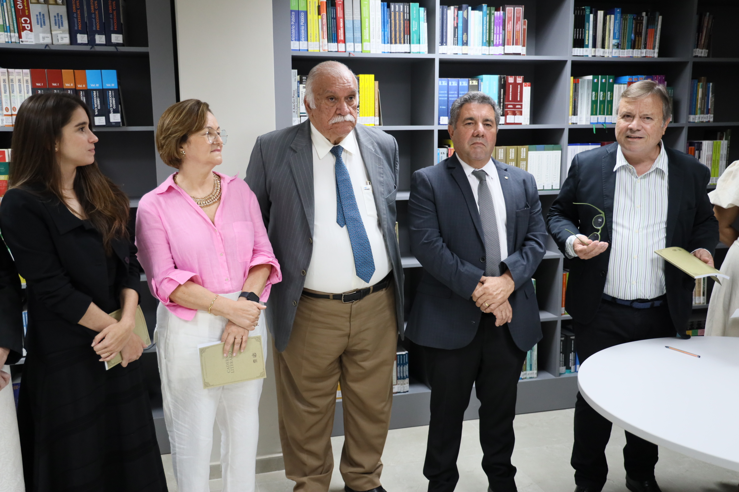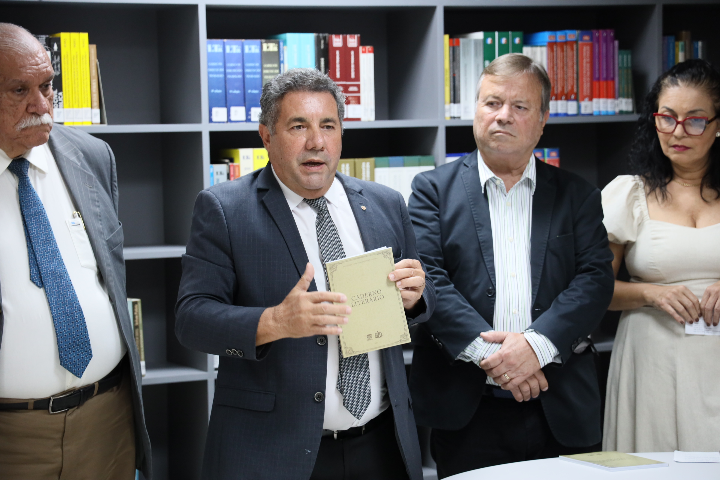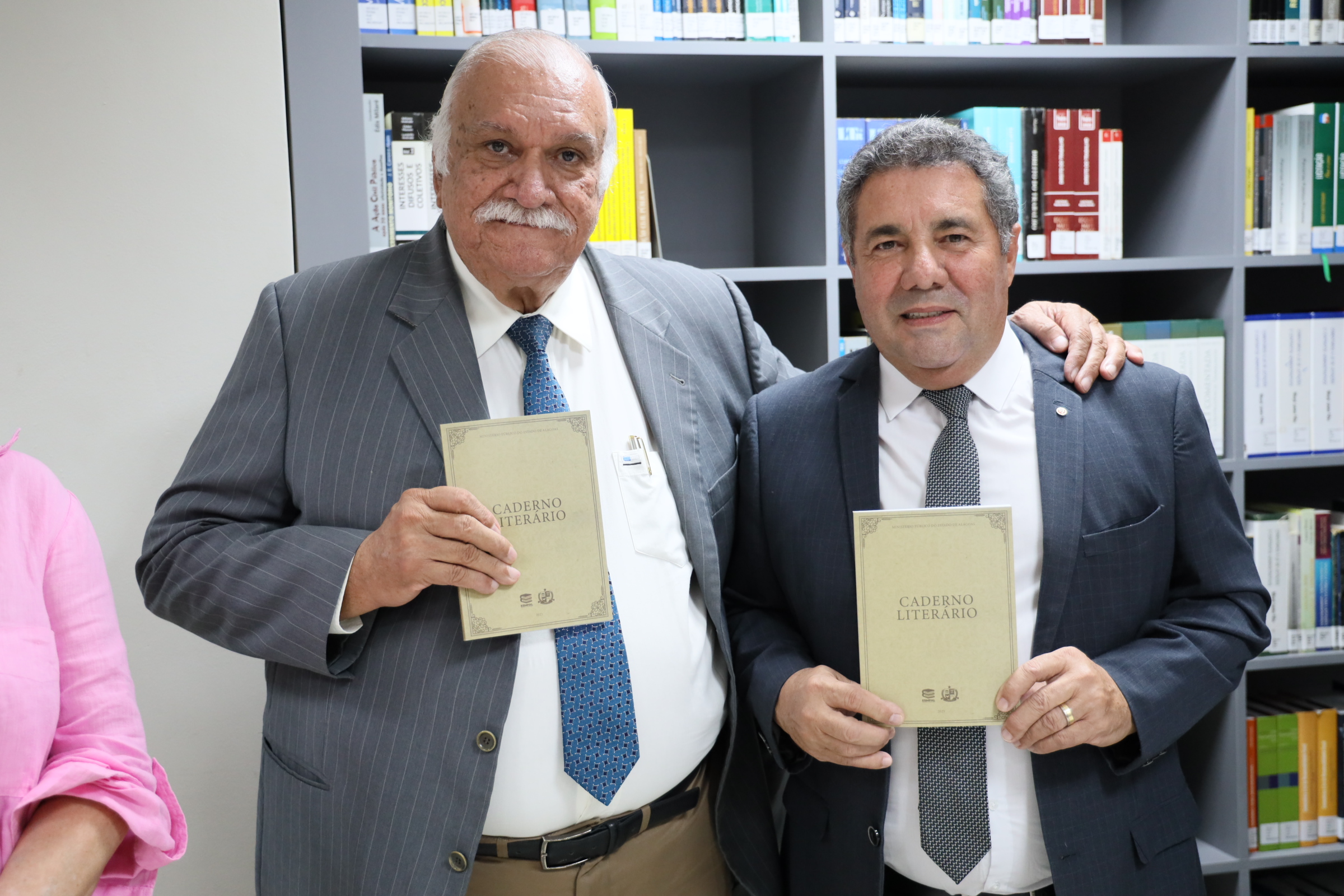 Em clima de alegria, com todos num mesmo patamar: o da cultura. A Biblioteca Ernani Méro , situada no prédio-sede da Procuradoria-Geral de Justiça, no bairro do Poço, serviu, nesta sexta-feira (15), de palco para o lançamento do I Caderno Literário do Ministério Público de Alagoas (MPAL), organizado por sua Escola Superior, que tem na direção o procurador de Justiça Walber José Valente de Lima. O procurador-geral de Justiça, Márcio Roberto Tenório de Albuquerque, o subprocurador-geral administrativo institucional, Lean Araújo, o corregedor-geral Maurício Pitta, o ouvidor Eduardo Tavares, a secretária Executiva da Escola, promotora de Justiça Lídia Malta, e o desembargador José Carlos Malta Marques, que também já foi promotor de Justiça, prestigiaram o evento, todos recepcionando o escritor Carlito Lima que honrosamente prefaciou a obra.