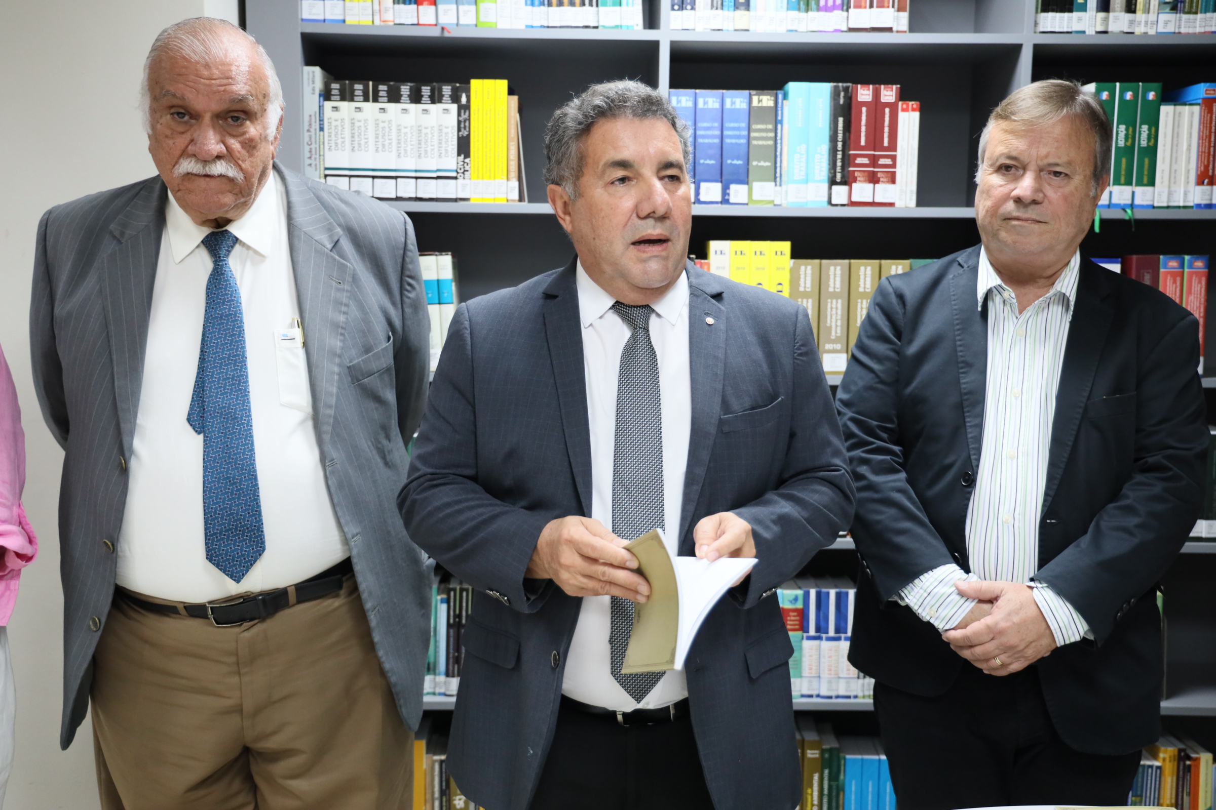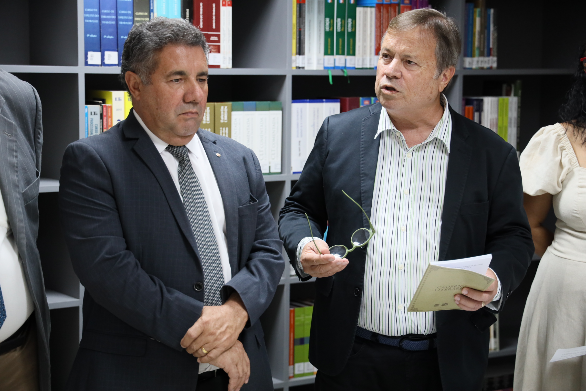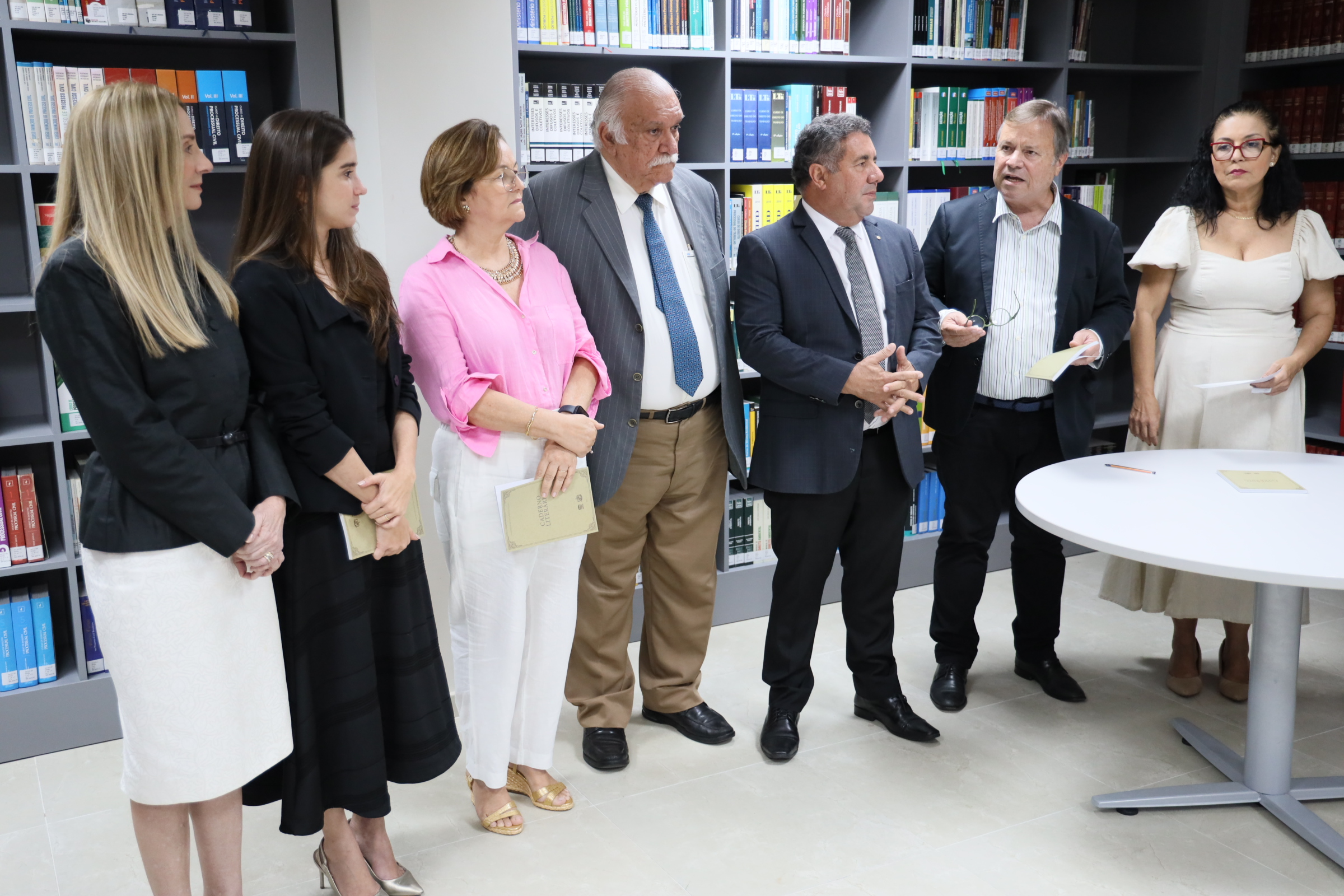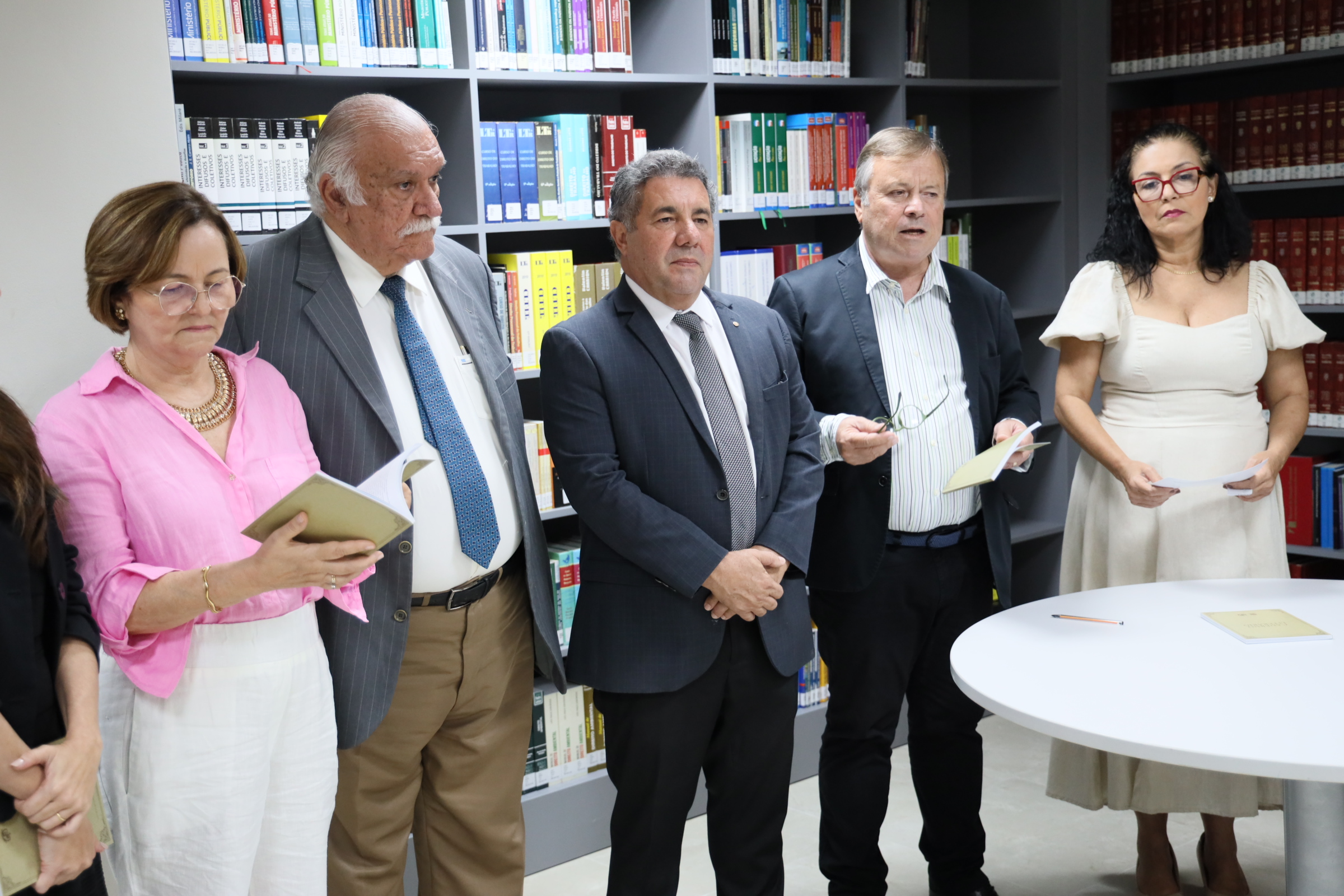Em clima de alegria, com todos num mesmo patamar: o da cultura. A Biblioteca Ernani Méro , situada no prédio-sede da Procuradoria-Geral de Justiça, no bairro do Poço, serviu, nesta sexta-feira (15), de palco para o lançamento do I Caderno Literário do Ministério Público de Alagoas (MPAL), organizado por sua Escola Superior, que tem na direção o procurador de Justiça Walber José Valente de Lima. O procurador-geral de Justiça, Márcio Roberto Tenório de Albuquerque, o subprocurador-geral administrativo institucional, Lean Araújo, o corregedor-geral Maurício Pitta, o ouvidor Eduardo Tavares, a secretária Executiva da Escola, promotora de Justiça Lídia Malta, e o desembargador José Carlos Malta Marques, que também já foi promotor de Justiça, prestigiaram o evento, todos recepcionando o escritor Carlito Lima que honrosamente prefaciou a obra.