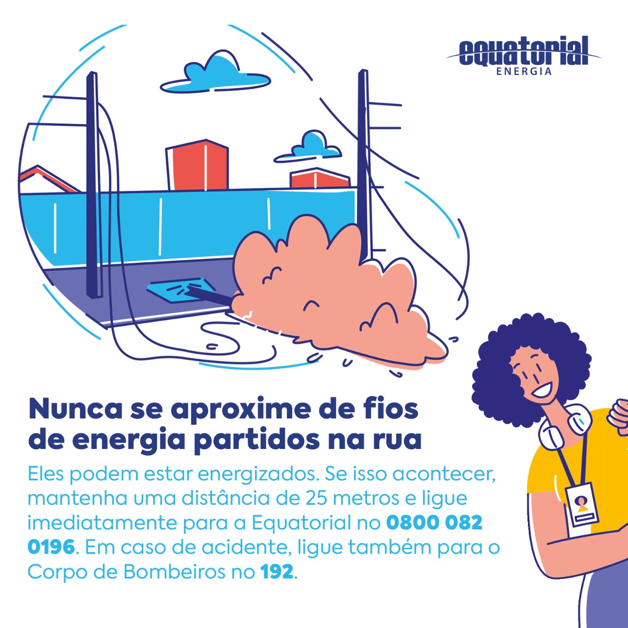 ” Após reuniões realizadas pelo Ministério Público com a Equatorial, visando disponibilizar à sociedade alagoana um canal de comunicação devido o risco desse tipo de evento, foi direcionado o número 08000820196, tendo a primeira opção para registro de risco, como os casos de fios caídos da rede elétrica, possibilitando o atendimento prioritário e imediato. Ressaltando a responsabilidade social, ficou acordado que a Equatorial veiculará nos meios de comunicação uma campanha informativa e de orientação à população, com o objetivo de prevenir acidentes, inclusive com morte por eletroplessão, como ocorreu recentemente com o menor Lucas de oito anos, em Riacho Doce, nesta capital, que poderia ter sido evitada. Assim, as ações implementadas pela Equatorial devem ser divulgadas à população, atuando o Ministério Público em homenagem ao Lucas, pois, segundo seu pai revelou na audiência, ele queria estudar para salvar vidas. Conclamo a sociedade a se engajar nessa campanha compartilhando o card informativo”, ressalta.
