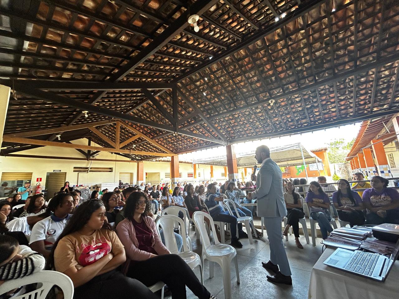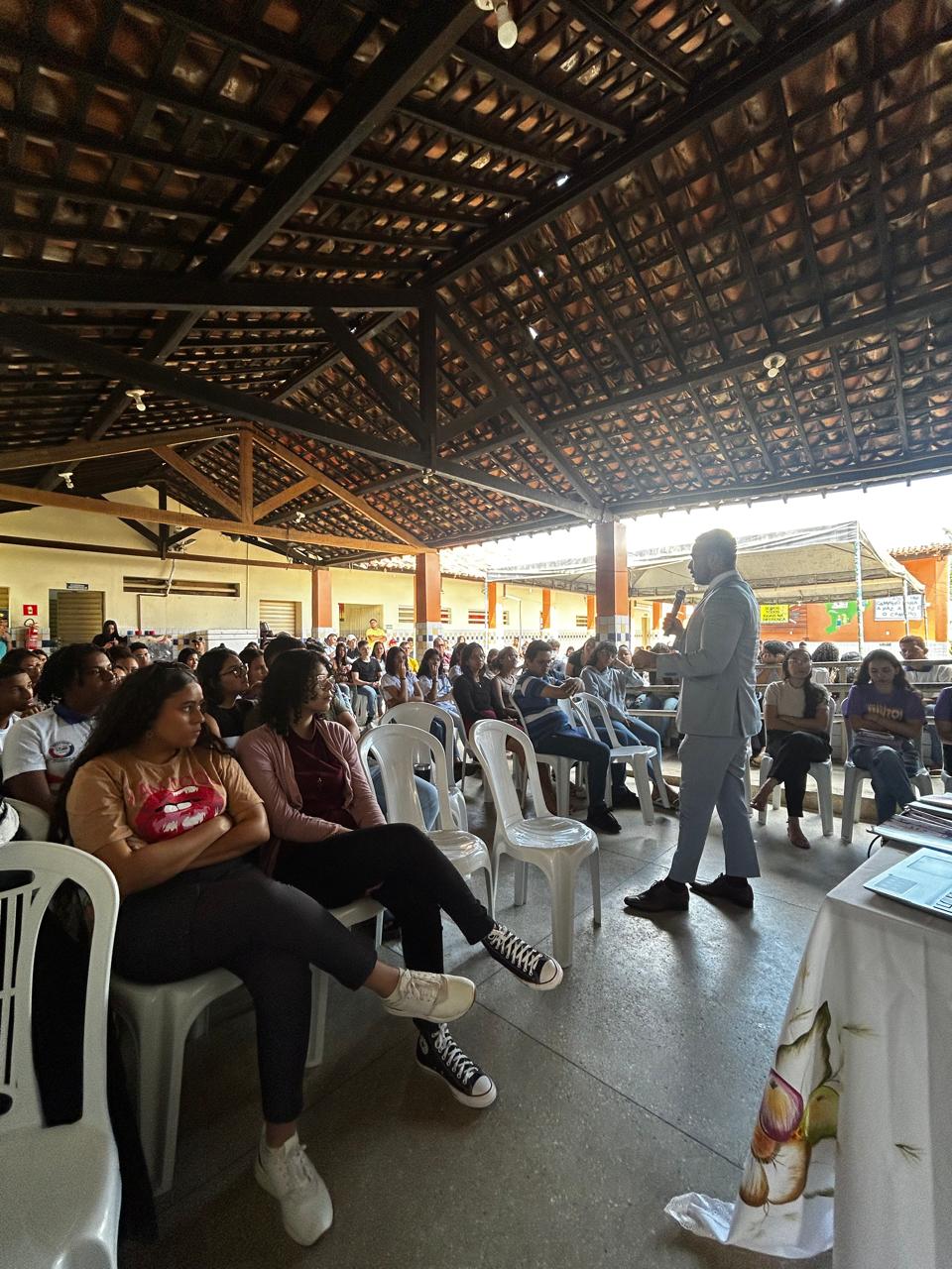 O Ministério Público de Alagoas realizou nesta quinta-feira (29) palestra com alunos da Escola Estadual de Coité das Pinhas, localizada na zona rural do município de Igaci. No encontro, o promotor de Justiça Kleytionne Sousa tratou sobre o combate à violência doméstica e familiar contra a mulher. “Eu falei sobre o ciclo de violência, bem como o papel que o Ministério Público desempenha no enfrentamento a esse tipo de crime. Também abordei o acolhimento à vítima e a necessidade de mudarmos o pensamento machista que impera na sociedade e que culpabiliza a mulher vítima”, afirmou o promotor Kleytionne. Ele também alertou os jovens sobre o papel que cada um tem no enfrentamento à violência doméstica, destacando a importância da denúncia e os canais que as pessoas podem acessar para informar sobre alguma agressão que tenham presenciado ou sofrido. “Enquanto sociedade, precisamos conhecer esses canais de denúncias. No Ministério Público, temos os aplicativos para smartphone ‘Ouvidoria MPAL’ e ‘Proteção Mulheres’, além dos telefones para denúncia 2122-3512 ou 2122-0761”, informou o promotor. O Ministério Público de Alagoas também recebe denúncias em seu site (clique aqui) e através do e-mail ouvidoria@mpal.mp.br. Vale destacar que a palestra realizada pelo MPAL faz parte da programação do Município de Igaci para a campanha do “Agosto Lilás”.