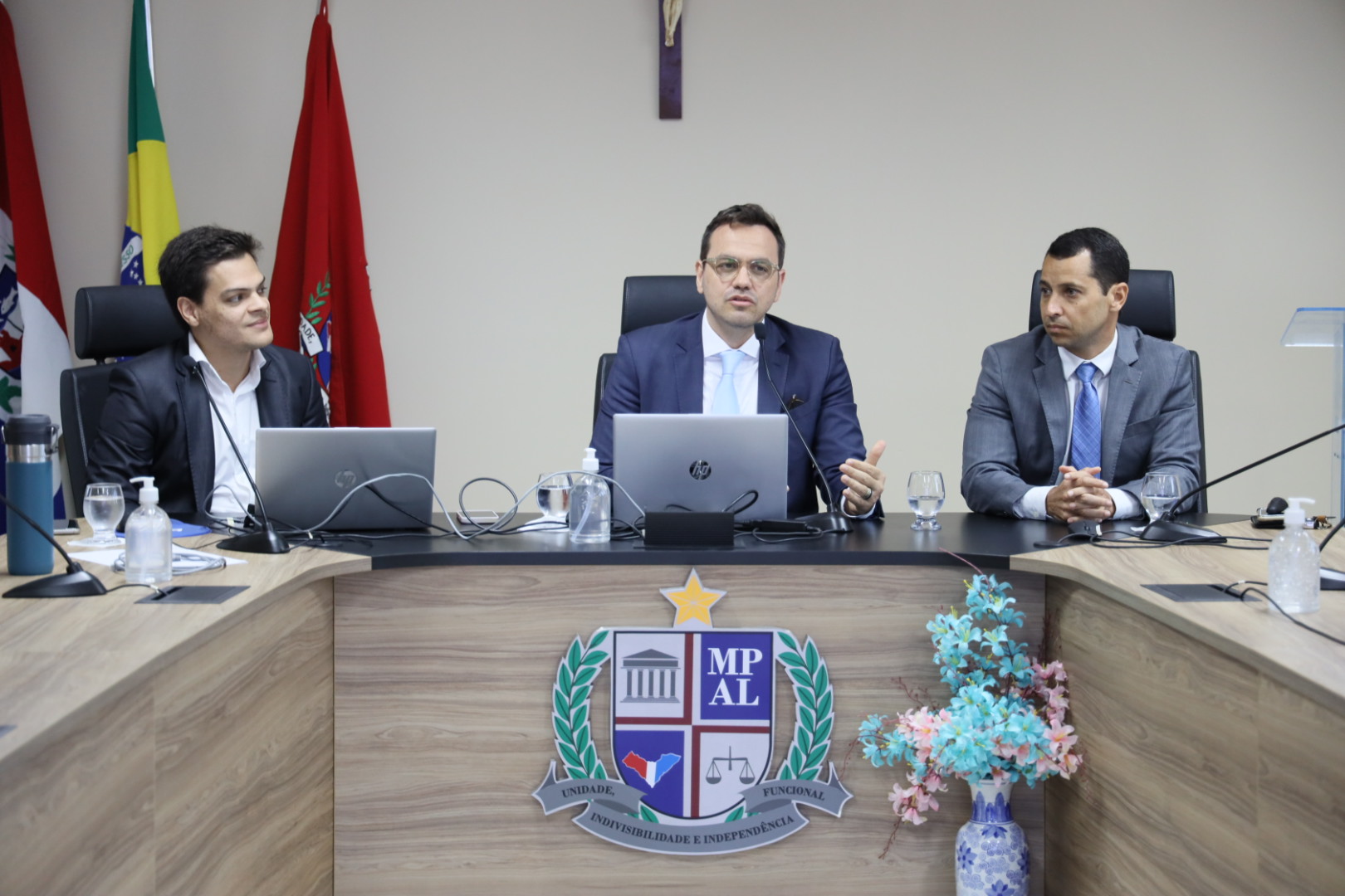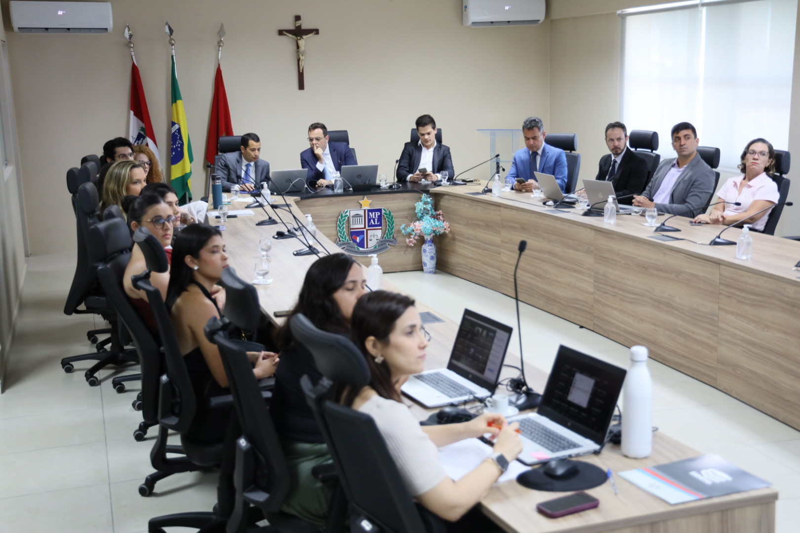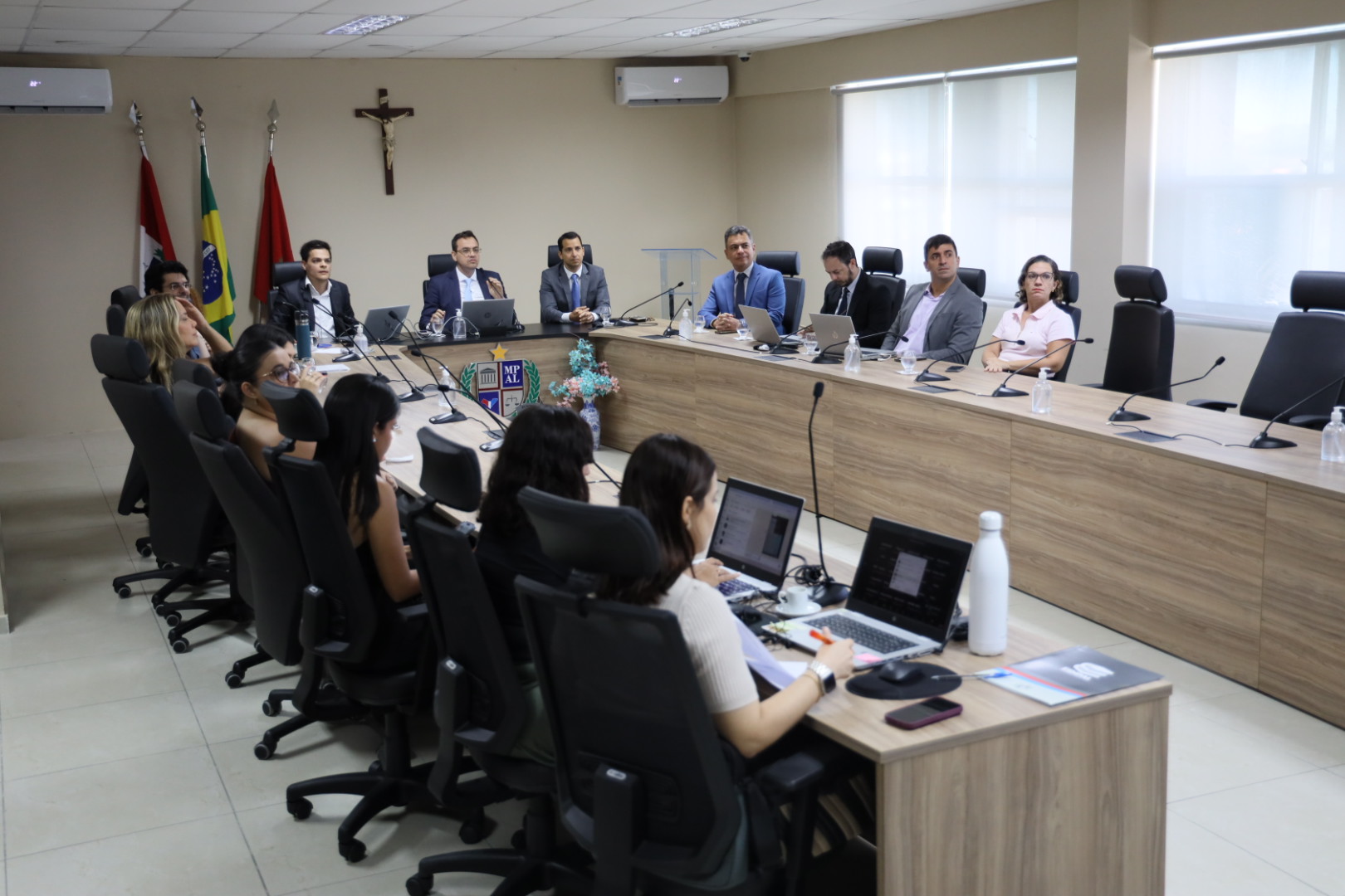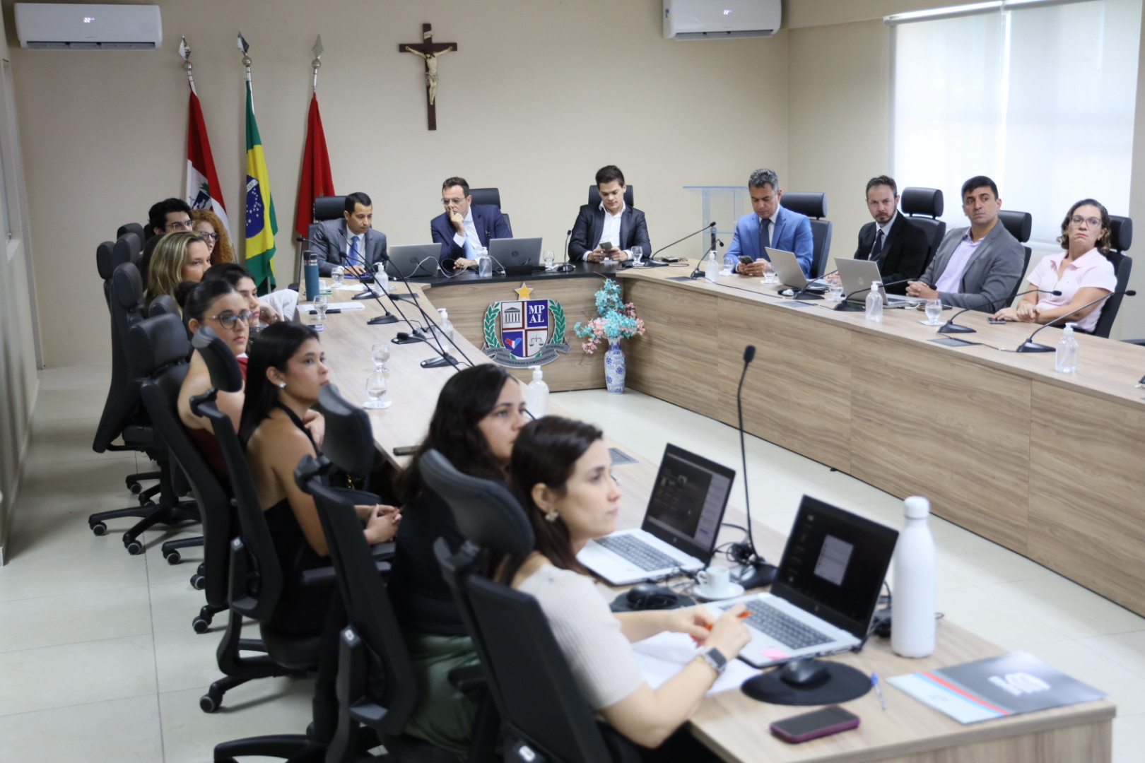 Na manhã desta terça-feira (08), o Ministério Público de Alagoas, por meio de sua Escola Superior (ESMPAL), promoveu um curso sobre “depoimento especial e escuta especializada”, abordagens fundamentais para o atendimento de vítimas e testemunhas vulneráveis, especialmente crianças e adolescentes. O evento foi realizado na sala do Colégio dos Procuradores de Justiça, no prédio-sede, em Maceió, e contou com modalidade híbrida, permitindo a participação de mais de cem servidores e membros, tanto presencialmente quanto virtualmente, de todo o Brasil.