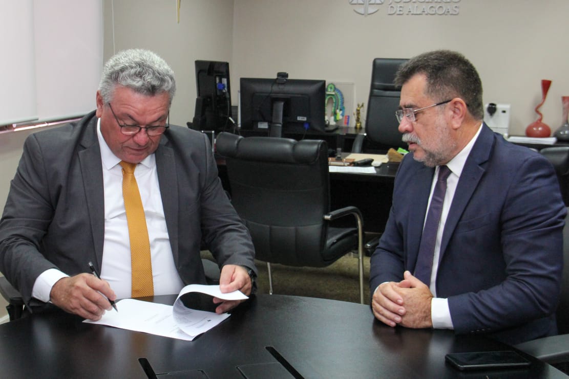 Assinam o documento, o corregedor-geral de Justiça, desembargador Domingos de Araújo Lima Neto, e o procurador-geral de Justiça Lean Antônio Ferreira de Araújo.