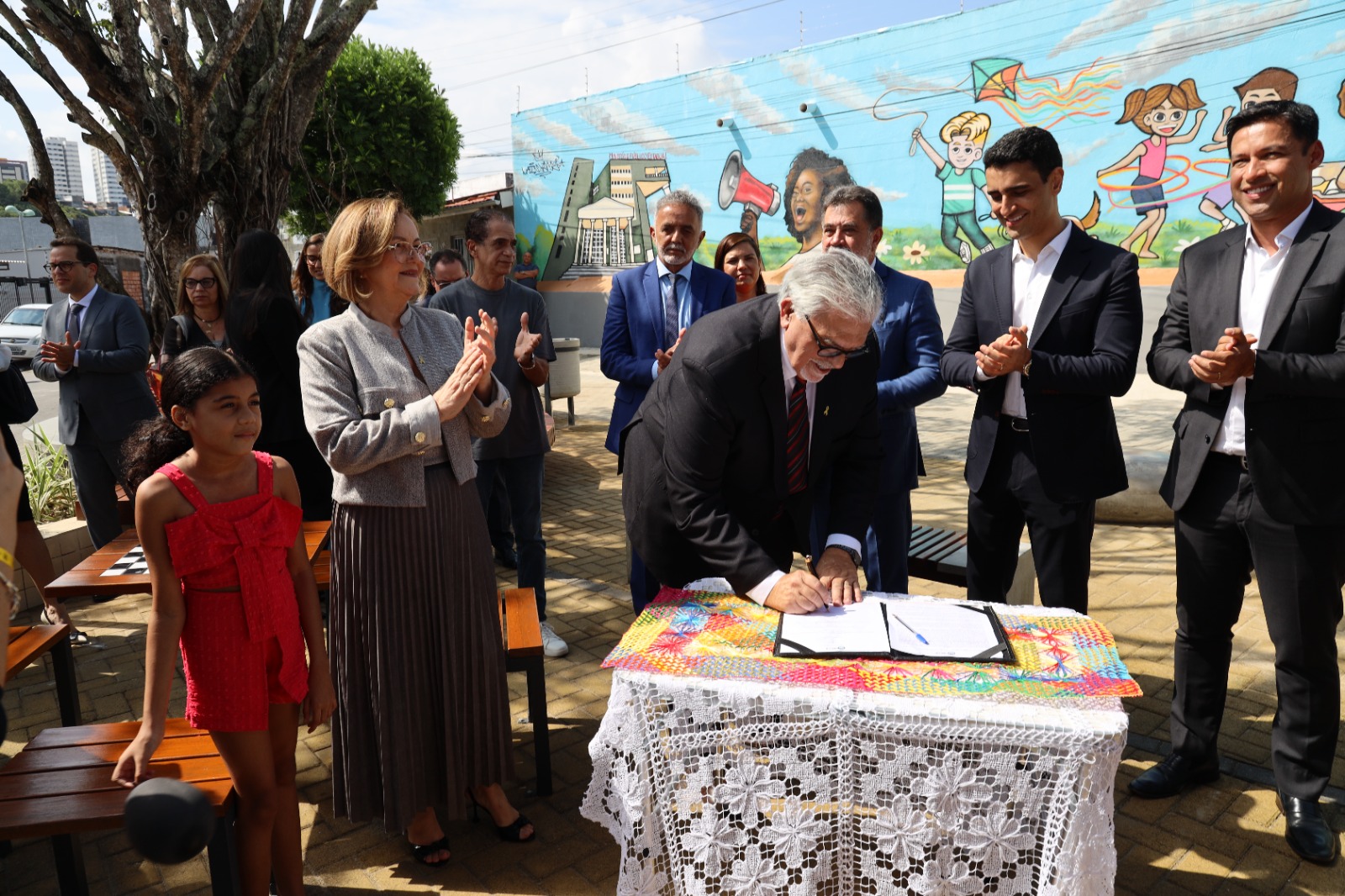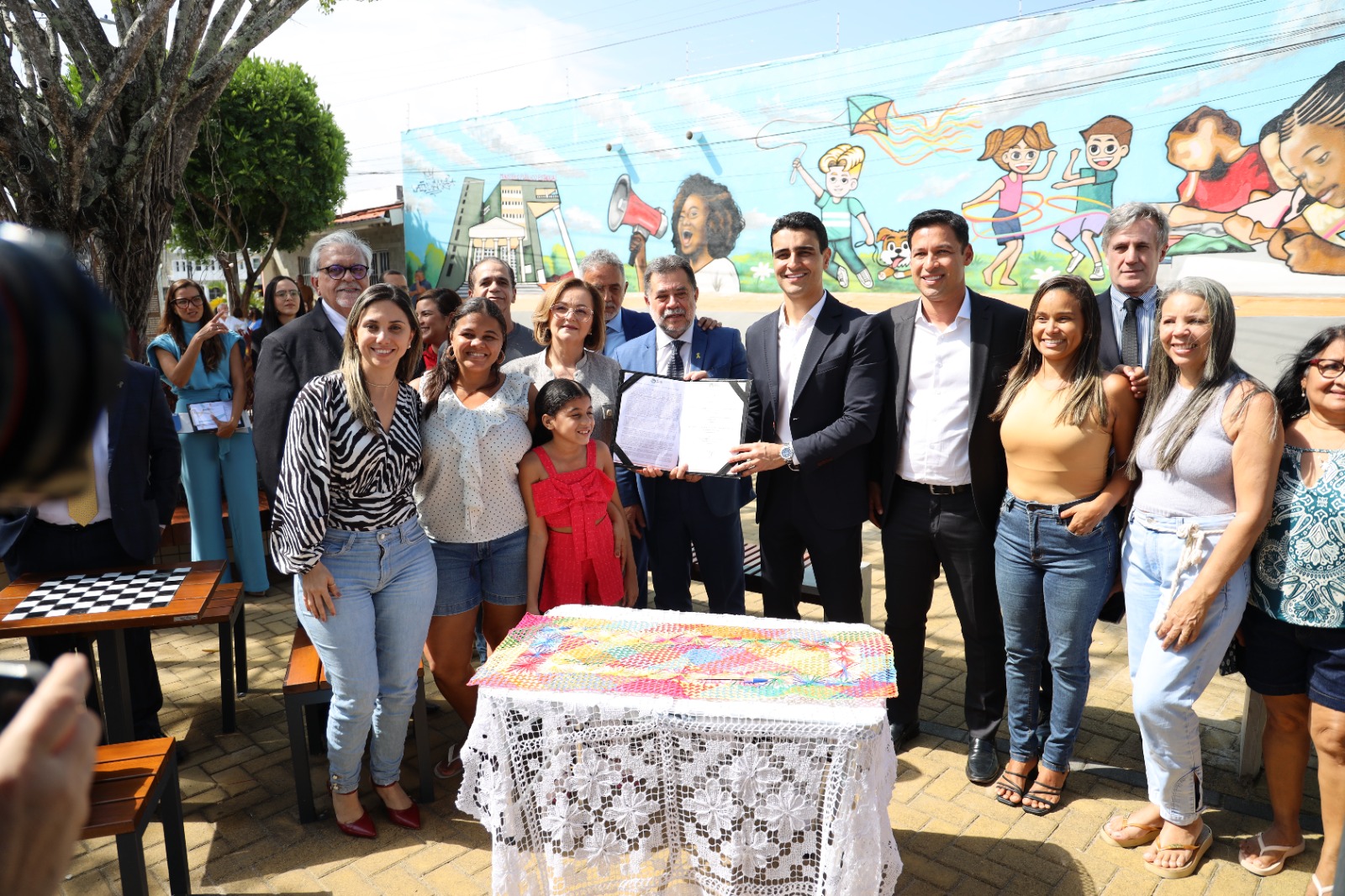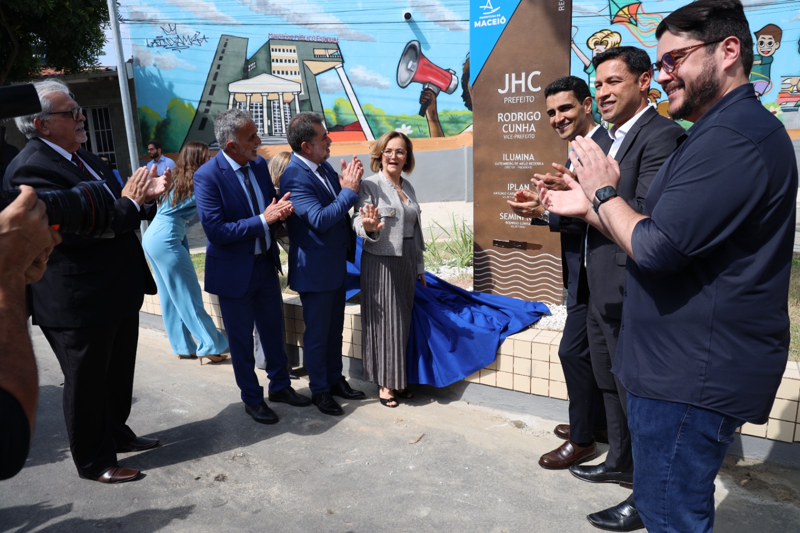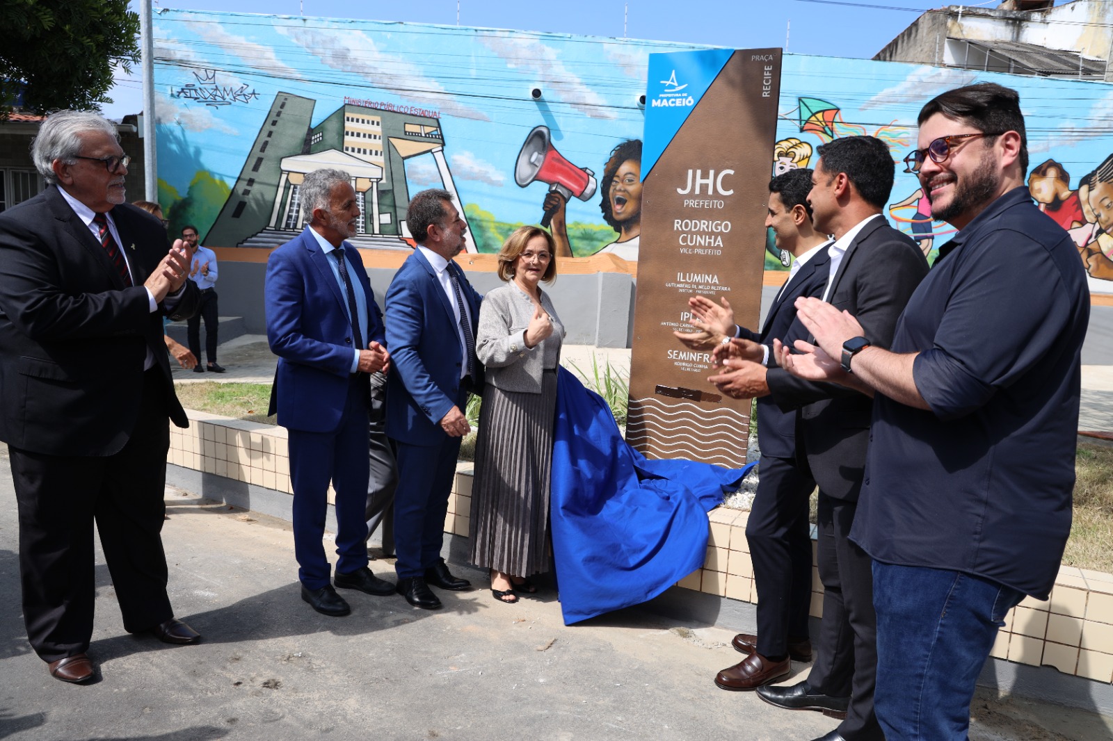 Logo após a cerimônia, as autoridades se dirigiram à Praça Recife, que fica ao lado do prédio-sede do MPAL. Na ocasião de reinauguração, o prefeito JHC e o procurador-geral de Justiça, Lean Araújo, assinaram o termo de adoção de espaço público. A partir de agora, o equipamento ficará sob a responsabilidade do Ministério Público. A ministra Marluce Caldas também participou da solenidade. Foi dela a ideia da adoção da praça.