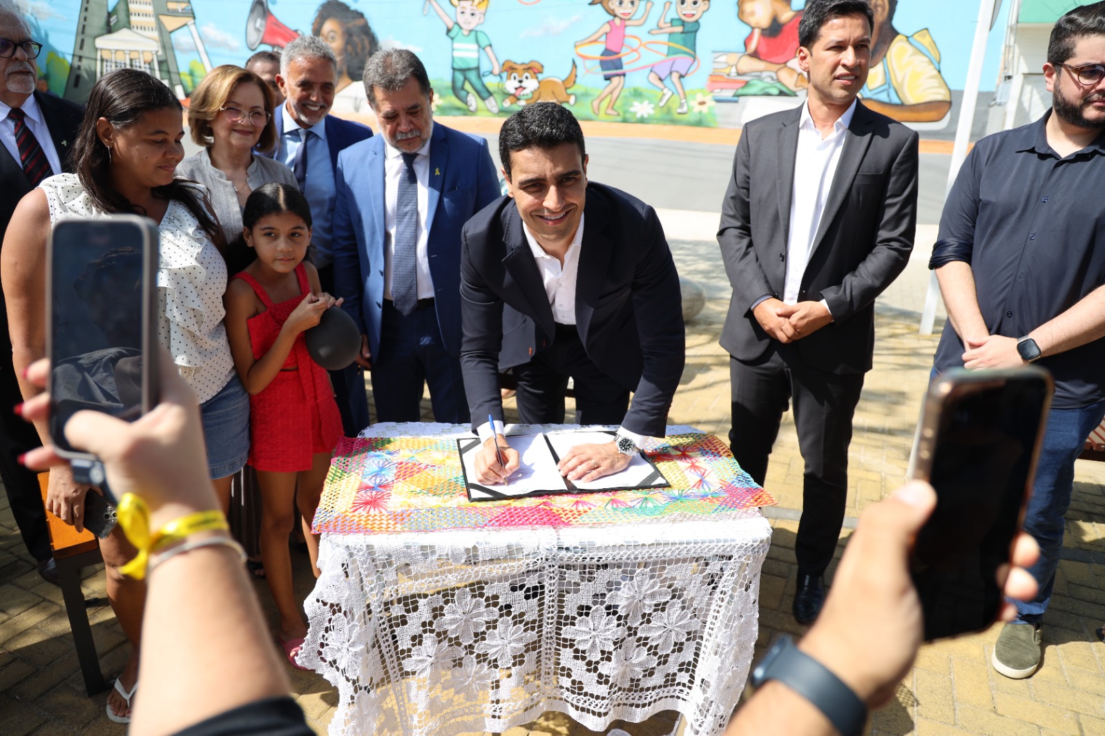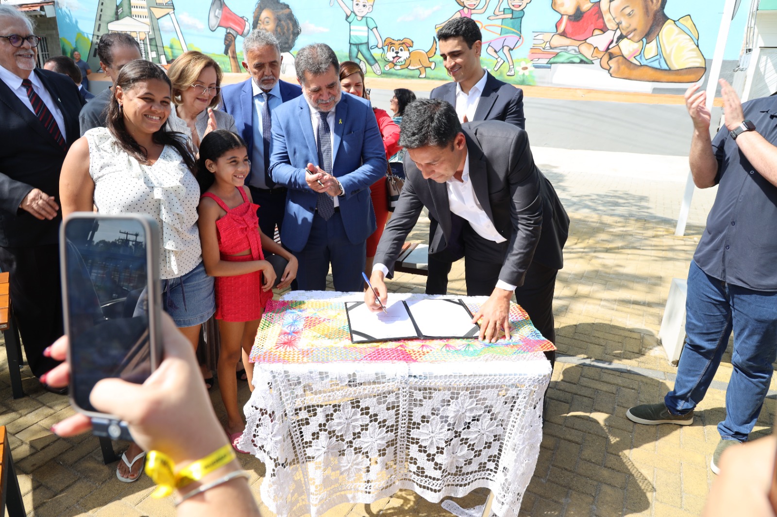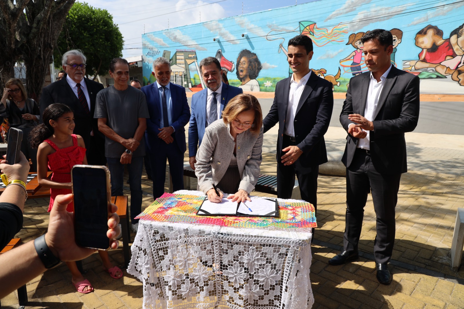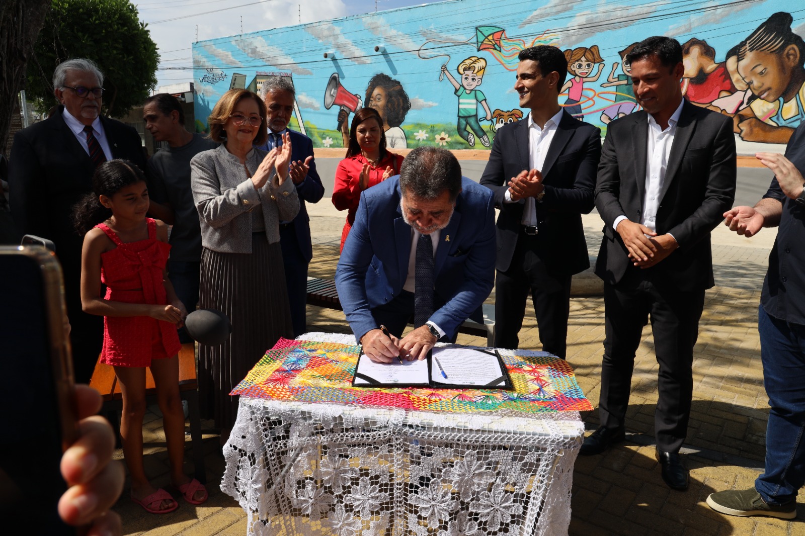 Logo após a cerimônia, as autoridades se dirigiram à Praça Recife, que fica ao lado do prédio-sede do MPAL. Na ocasião de reinauguração, o prefeito JHC e o procurador-geral de Justiça, Lean Araújo, assinaram o termo de adoção de espaço público. A partir de agora, o equipamento ficará sob a responsabilidade do Ministério Público. A ministra Marluce Caldas também participou da solenidade. Foi dela a ideia da adoção da praça.