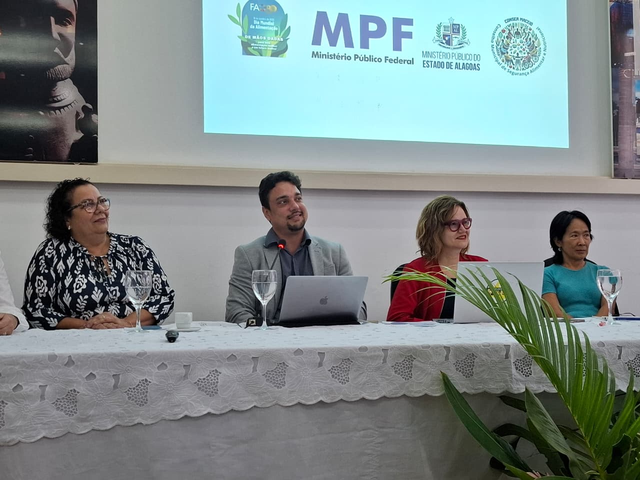 O evento realizado na sede do MPF, em Maceió, foi promovido em parceria com o Conselho Municipal de Segurança Alimentar e Nutricional de Maceió (CONSEA Maceió) e Ministério Público Estadual (MPAL), com apoio do Conselho Regional de Nutricionistas da 6ª Região (CRN-6), do Centro de Recuperação e Educação Nutricional de Alagoas (CREN/AL), do Núcleo de Estudos Agrários e Dinâmicas Territoriais (NUAGRÁRIO/IGDEMA/UFAL), da Embrapa e do Movimento Internacional de Juventudes (MOV).