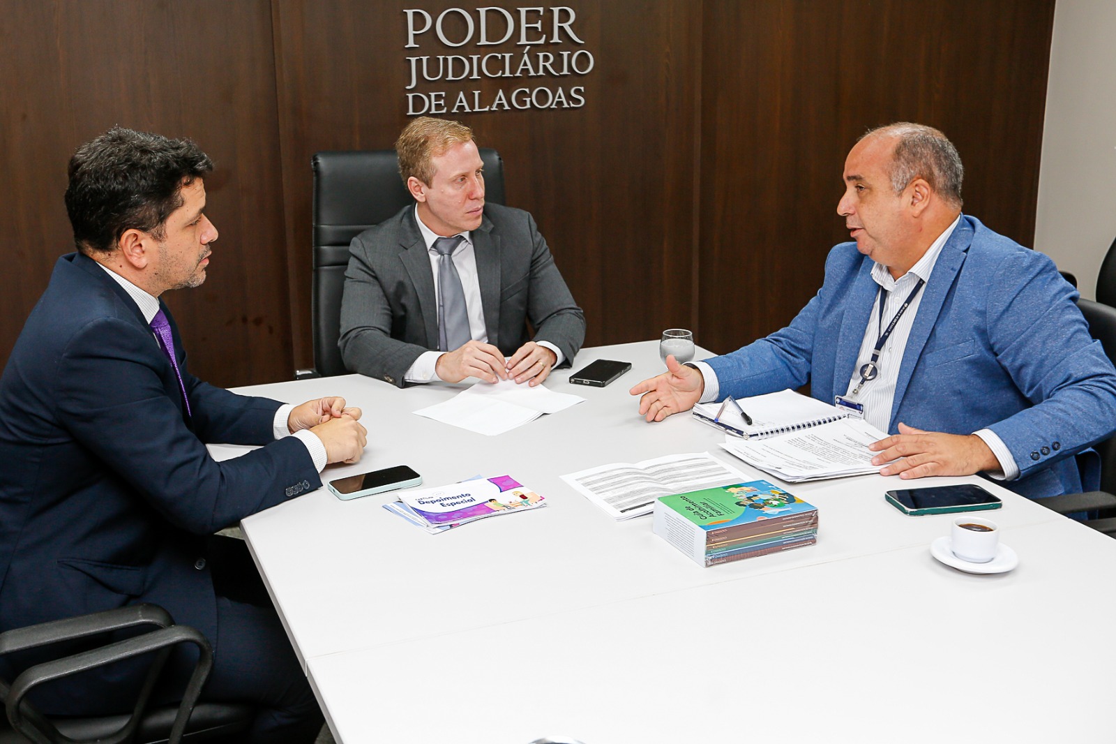 O Ministério Público do Estado de Alagoas (MPAL) participou, nesta sexta-feira (23), da reunião institucional voltada ao fortalecimento das políticas públicas de proteção à infância e à juventude, com foco especial no Serviço de Acolhimento em Família Acolhedora. O encontro reuniu o promotor de Justiça Gustavo Arns, coordenador do Núcleo de Defesa da Infância e Juventude do MPAL, e o juiz Anderson Passos, integrante da Coordenadoria Estadual da Infância e Juventude do Tribunal de Justiça de Alagoas (CEIJ/TJAL).