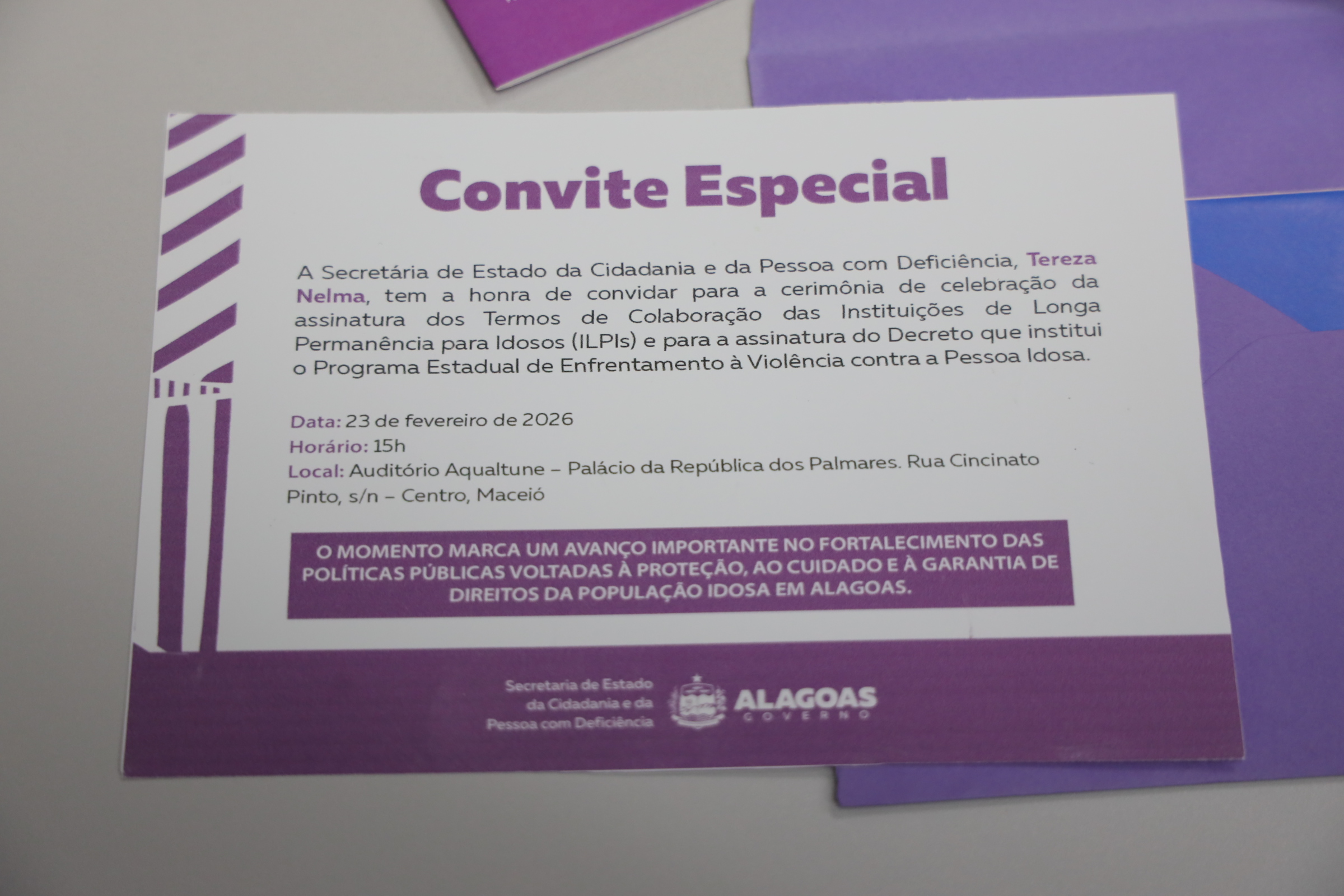 Outro ponto abordado foi a efetivação de um projeto piloto no município de Maribondo, voltado à implementação de um novo modelo de funcionamento de Instituição de Longa Permanência para Pessoas Idosas. A iniciativa foi desenvolvida de forma conjunta, com a participação do diretor do Centro de Apoio Operacional às Promotorias (CAOP), promotor de Justiça José Antônio Malta Marques, e prevê o funcionamento da instituição com apoio do Estado, acompanhamento técnico e parâmetros de cuidado qualificado e humanizado.